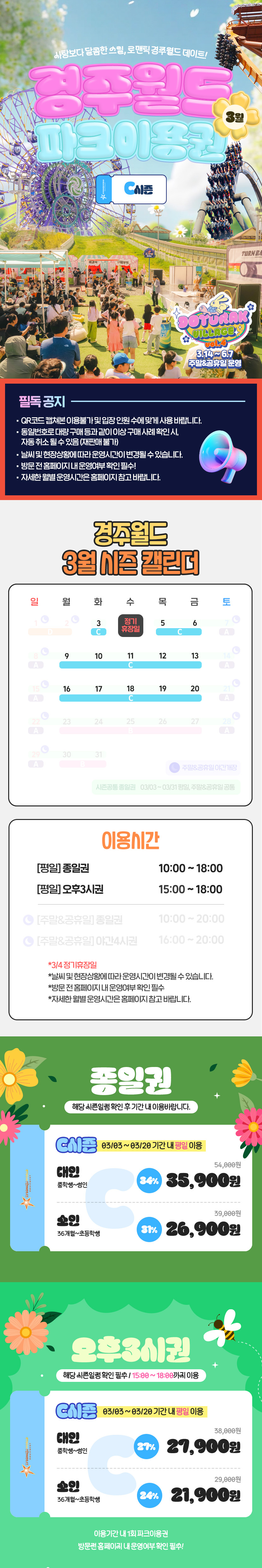 C시즌 종일권 : 3/3~3/20 평일 이용 가능