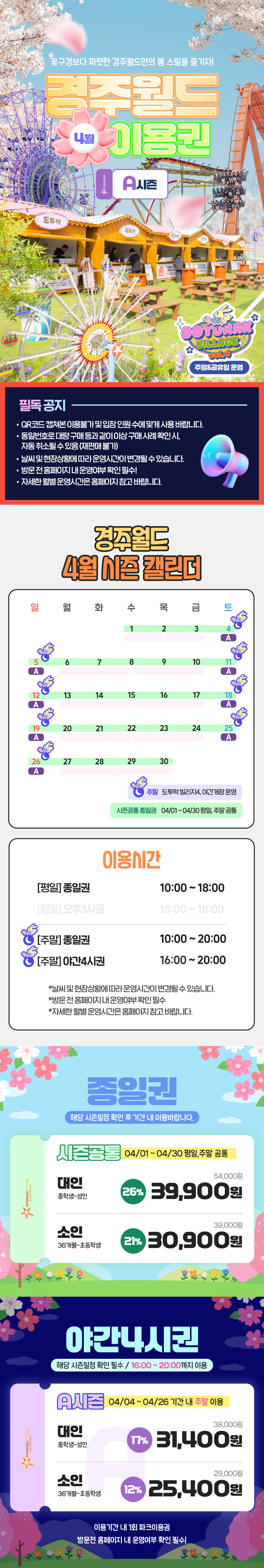A시즌 종일권: 4/1~4/30 시즌공통 이용가능