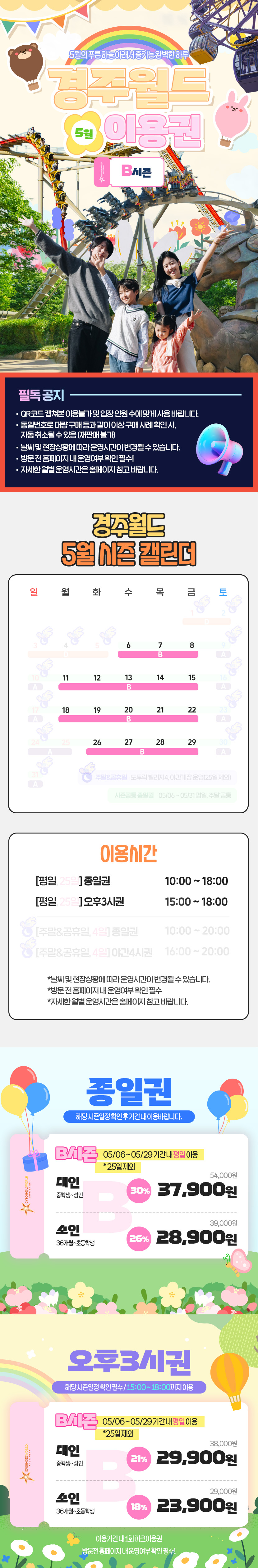 B시즌 종일권: 5/6~5/29 평일 이용가능