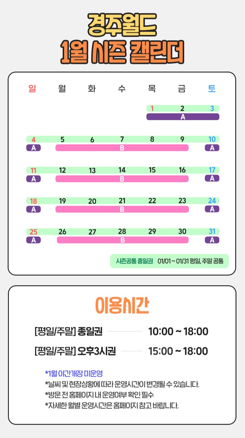 | 경주월드 1월 운영시간 안내 |