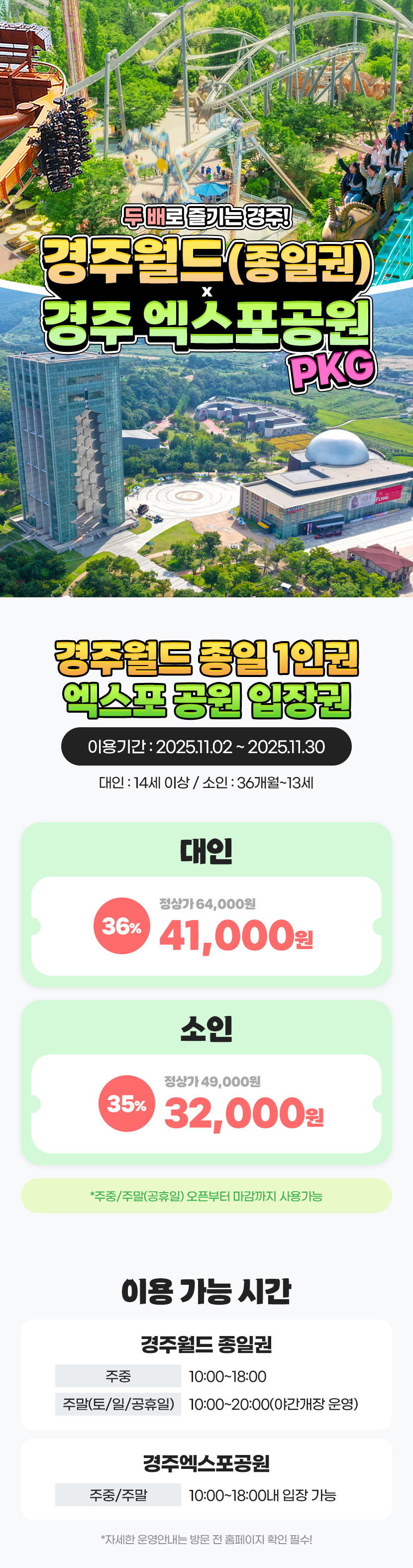 경주월드 종일권 + 경주엑스포PKG(11/2~11/30)